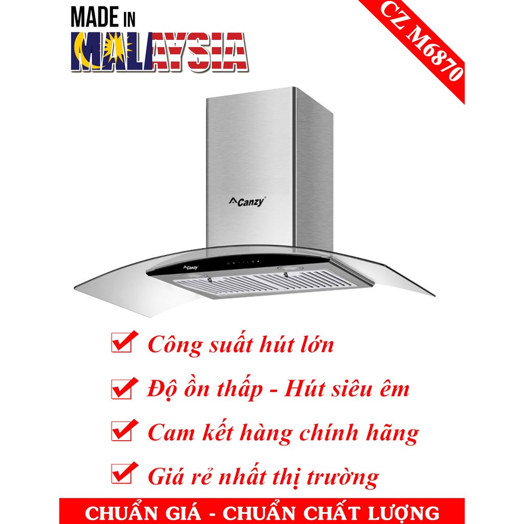 Thiết Bị Điện Gia Dụng > Đồ gia dụng nhà bếp > Máy hút khói || Máy hút mùi kính cong Canzy CZ M6870 (Điểu khiển cảm ứng, Tự động làm sạch, Lực hút 1500m³/h, Nhập khẩu Malaysia)Còn hàng