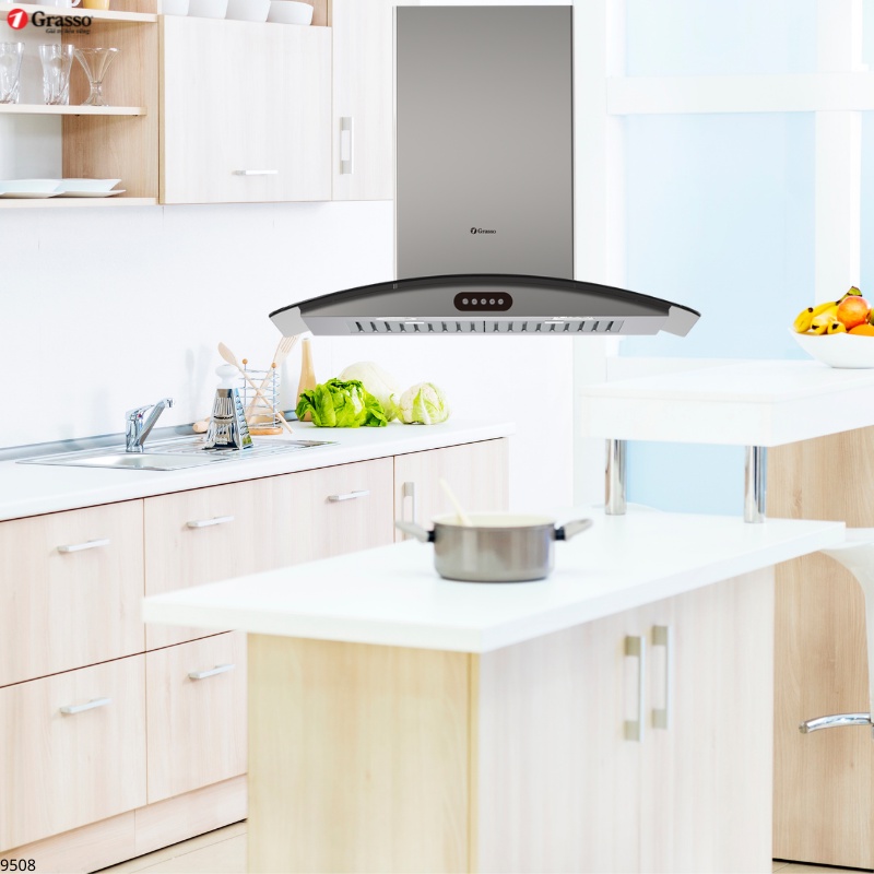 Giới thiệu Máy hút mùi kính cong Grasso GS 9508 - 70/90 thiết kế hiện đại