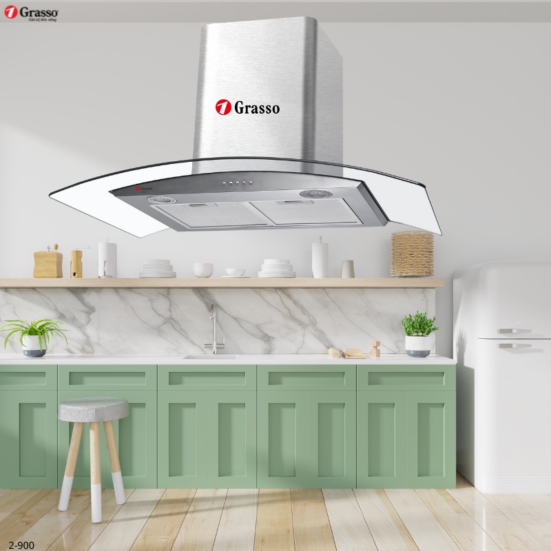 Giới thiệu Máy hút mùi kính cong Grasso GS 2-700/900 thiết kế hiện đại