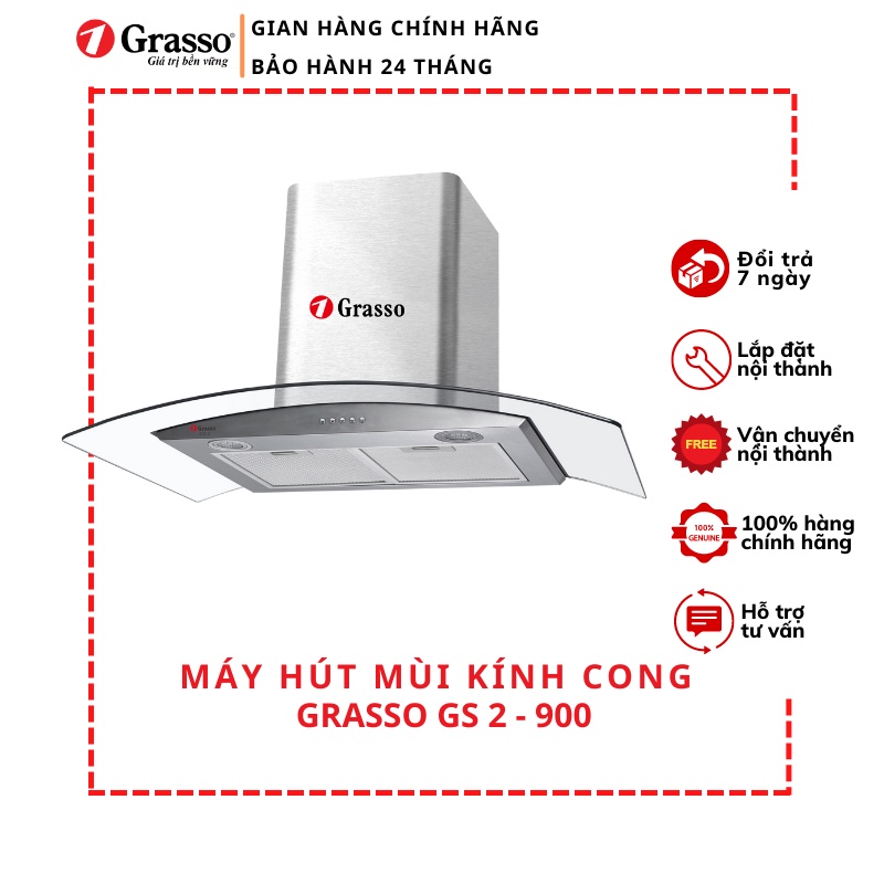 Thiết Bị Điện Gia Dụng > Đồ gia dụng nhà bếp > Máy hút khói || Máy hút mùi kính cong Grasso GS 2-700/900 thiết kế hiện đạiCòn hàng