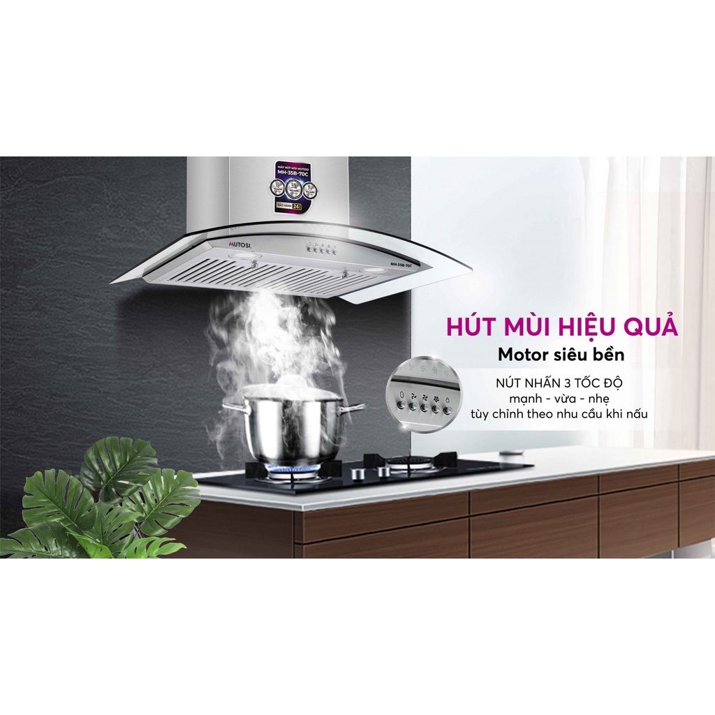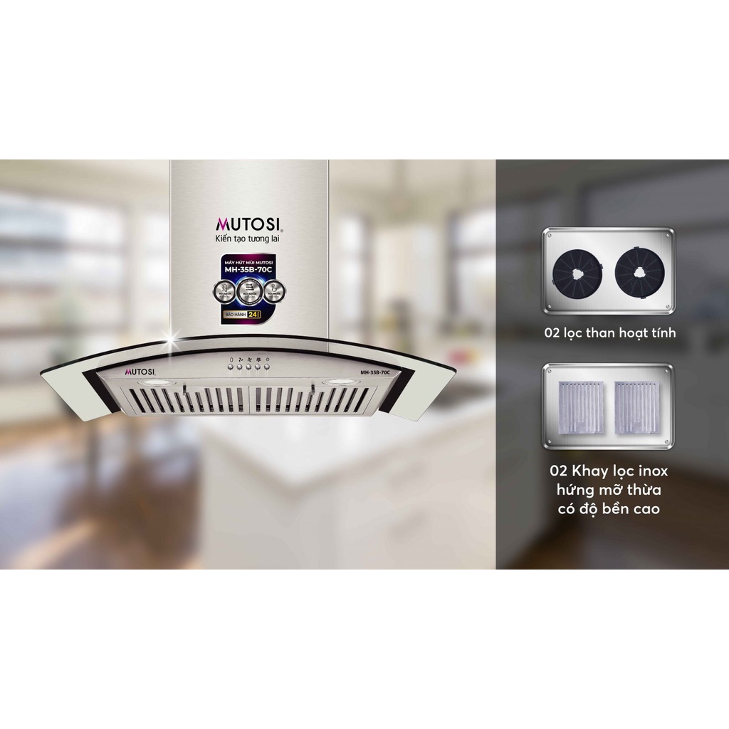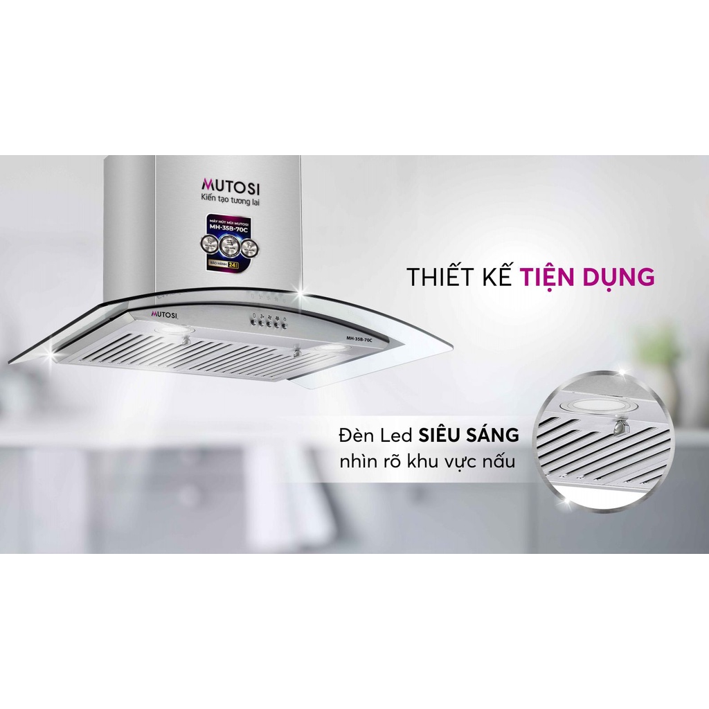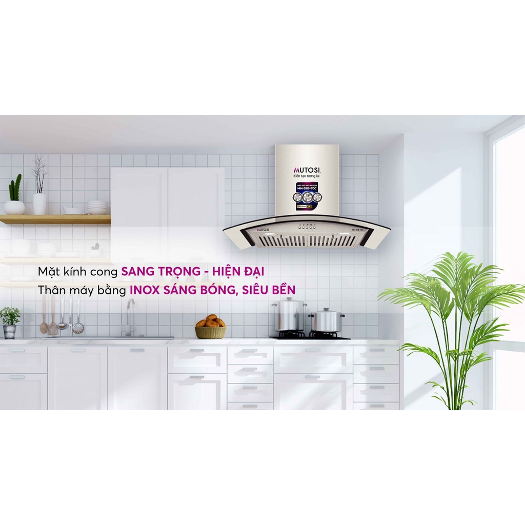 Không chỉ giúp tránh được những mùi khói, thức ăn khi nấu mà còn có thể làm sạch, lọc bầu không khí, đảm bảo sức khỏe cho mọi thành viên trong gia đình, máy hút mùi dần trở thành thiết bị không thể thiếu trong mỗi căn bếp hiện đại ngày nay. Hiểu được nhu cầu thiết yếu đó, Mutosi đã cho ra mắt mẫu máy hút mùi kính cong Mutosi MH-35B-70C với công suất mạnh mẽ và thiết kế đặc biệt phù hợp với mọi căn bếp của người Việt, mang đến không gian bếp luôn thoáng mát, trong lành.