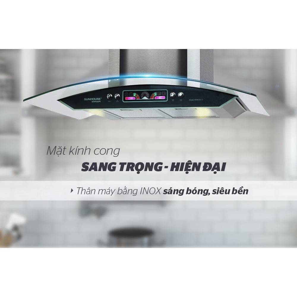 Máy hút mùi kính cong Sunhouse Mama MM6707-70 bắt mắt, chất lượng tốt, hút mùi hiệu quả, thích hợp sử dụng trong nhà hàng, gia đình, khách sạn…