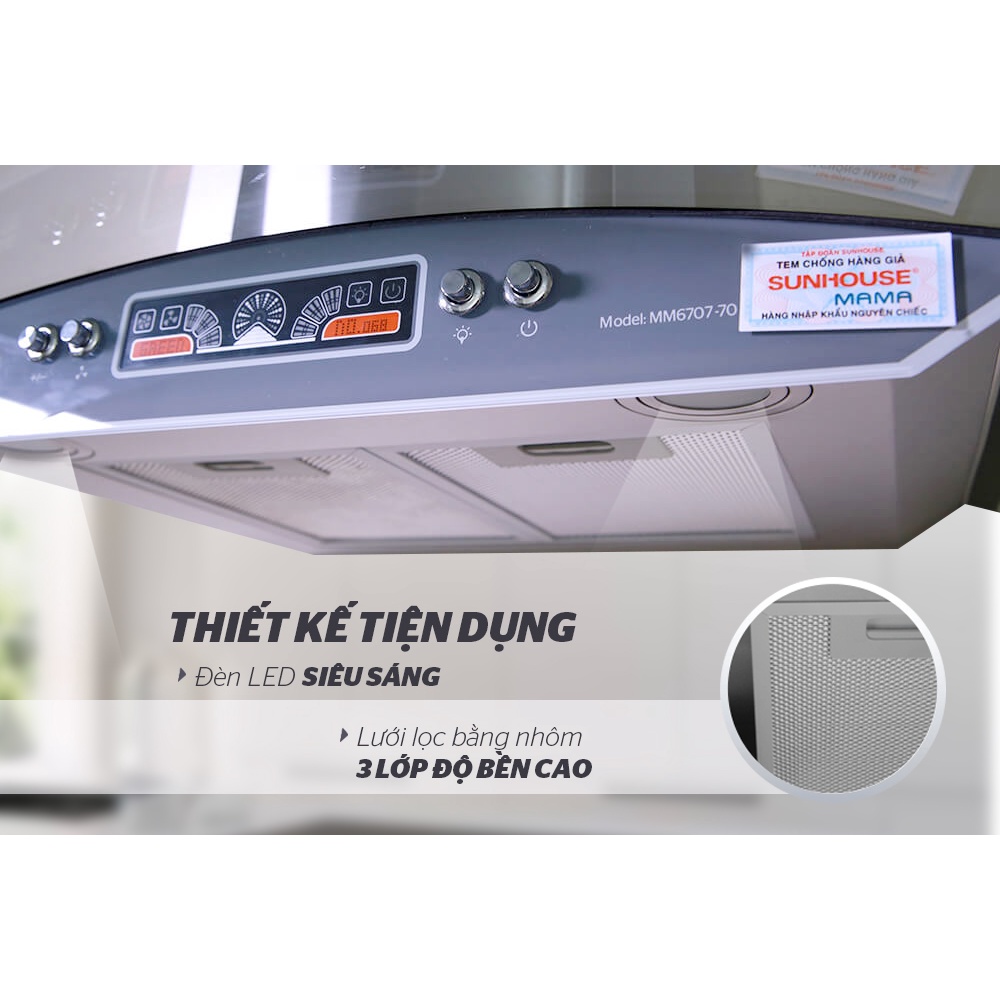 Thông số kỹ thuật: Máy hút mùi kính cong Sunhouse Mama MM6707-70