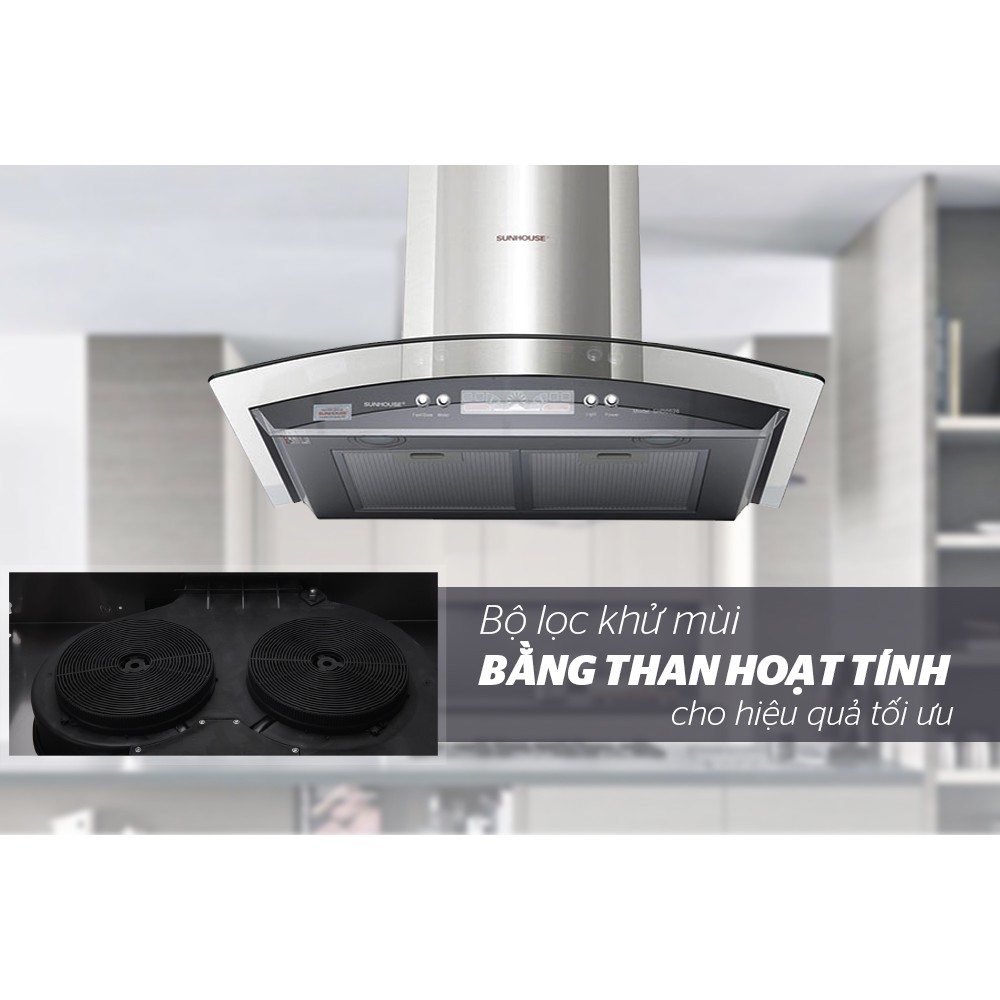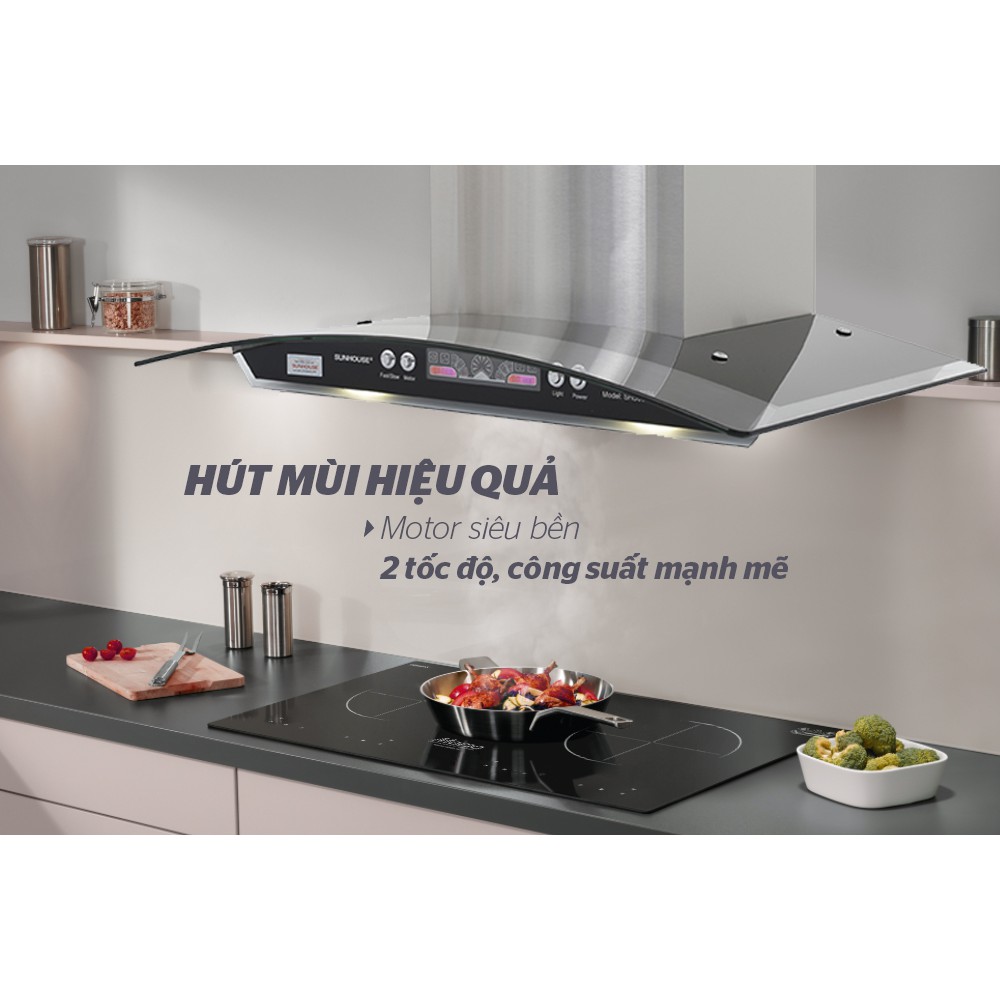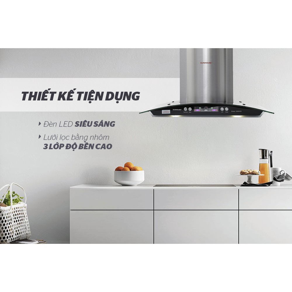 Máy hút mùi kính cong Sunhouse SHB6626 bắt mắt, chất lượng tốt, hút mùi hiệu quả, thích hợp sử dụng trong nhà hàng, gia đình, khách sạn…