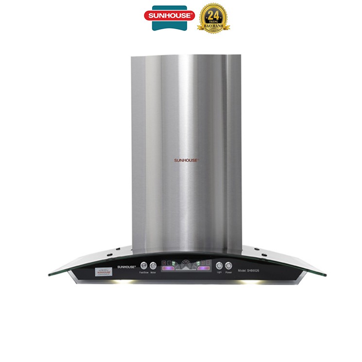Máy hút mùi kính cong sunhouse SHB6626 ( Bản nâng cấp của máy Sunhouse 6707 )Sở hữu thiết kế cong khá độc đáo, máy hút mùi SHB6626 còn được làm bằng thép không gỉ nổi bật. Chất liệu này không bám bẩn, không bị oxy hóa (gỉ sét) và dễ dàng vệ sinh, luôn sáng bóng như mới, tăng thẩm mỹ cho ngôi nhà.