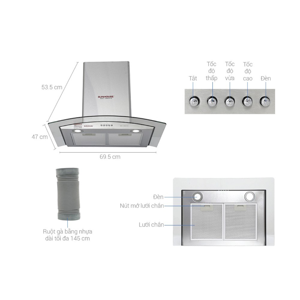 Thương hiệu: Sunhouse | Xem thêm các sản phẩm Máy hút khói, khử mùi của SunhouseMô tả ngắn