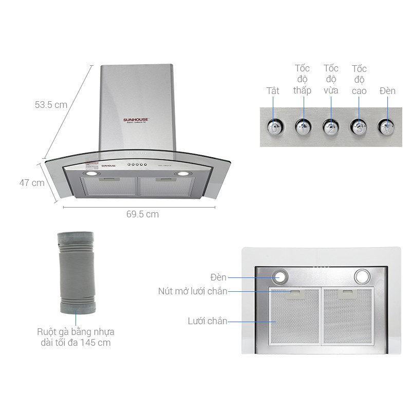 Thương hiệu: Sunhouse | Xem thêm các sản phẩm Máy hút khói, khử mùi của SunhouseMô tả ngắn
