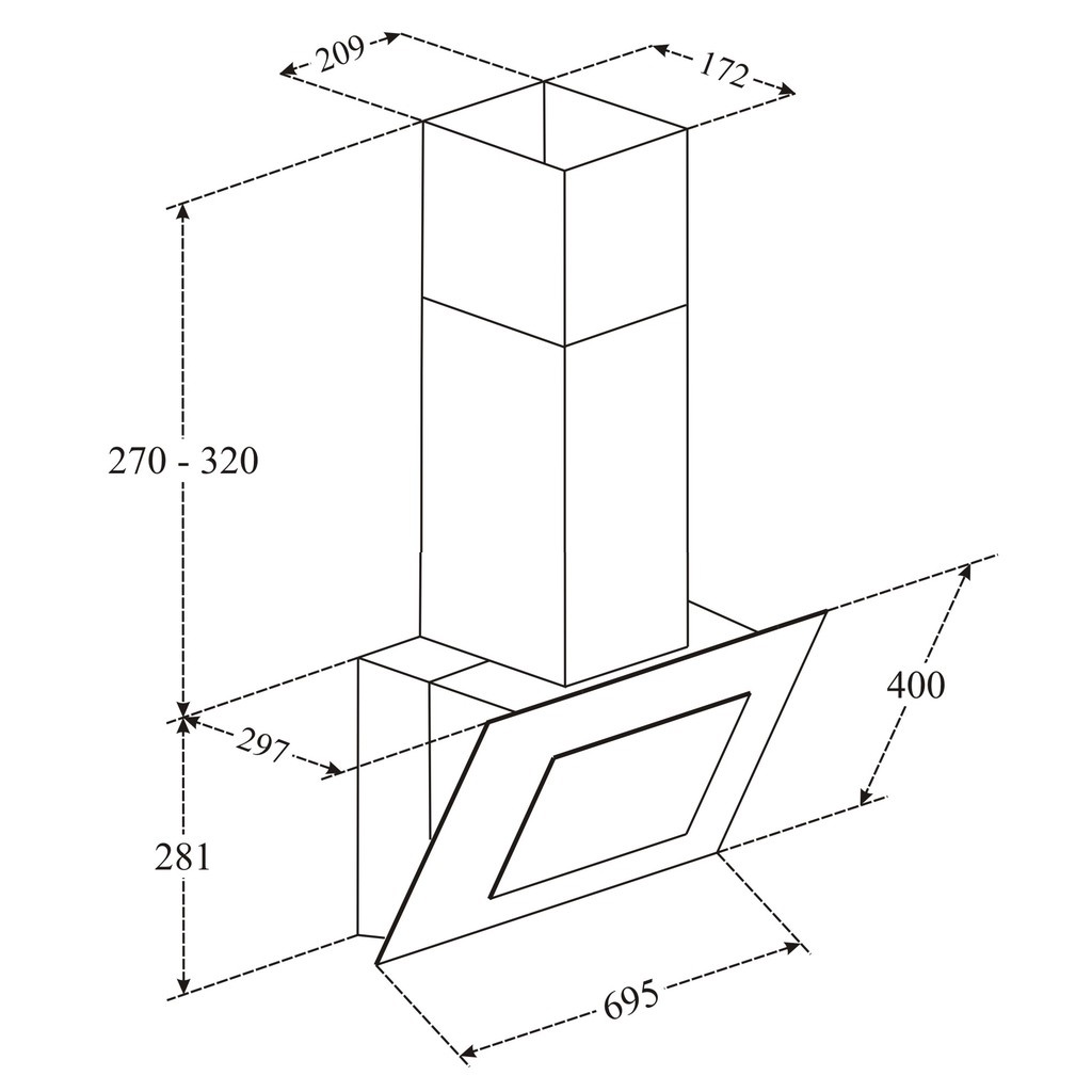 Máy hút mùi kính vát nghiêng Faster FS 3608B-70 ( Hút êm, Động cơ khỏe, Bảo Hành Chính Hãng 2 Năm)