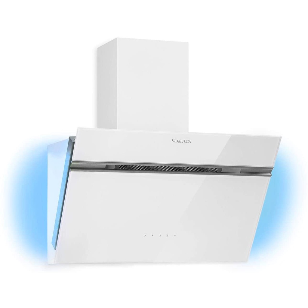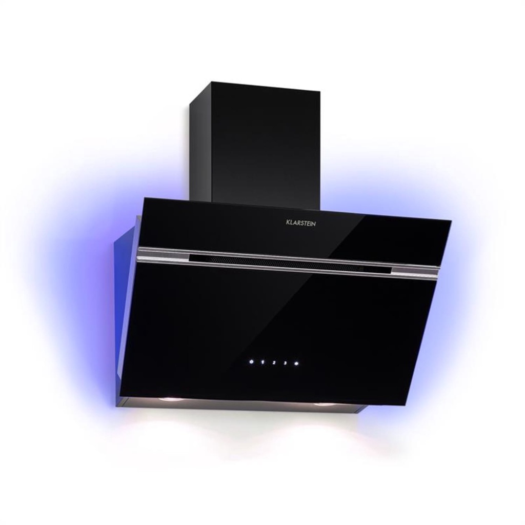 Máy hút mùi Klarstein Alina đặc biệt thu hút không chỉ bởi vẻ ngoài trang nhã mà còn bởi khả năng chiếu sáng xung quanh tùy chọn với chín màu sắc khác nhau. Máy hút mùi âm tường mang đến cho mọi căn bếp một bầu không khí riêng. Hai đèn bếp LED có thể chuyển đổi cũng cho phép quan sát chảo và nồi không bị cản trở bất cứ lúc nào – và do đó không có gì, ngoại trừ bộ phận trang trí bằng thép không gỉ tích hợp, xuyên qua bề mặt kính trang nhã, tất cả các yếu tố vận hành được tích hợp trực tiếp vào bề mặt như một bảng điều khiển cảm ứng.