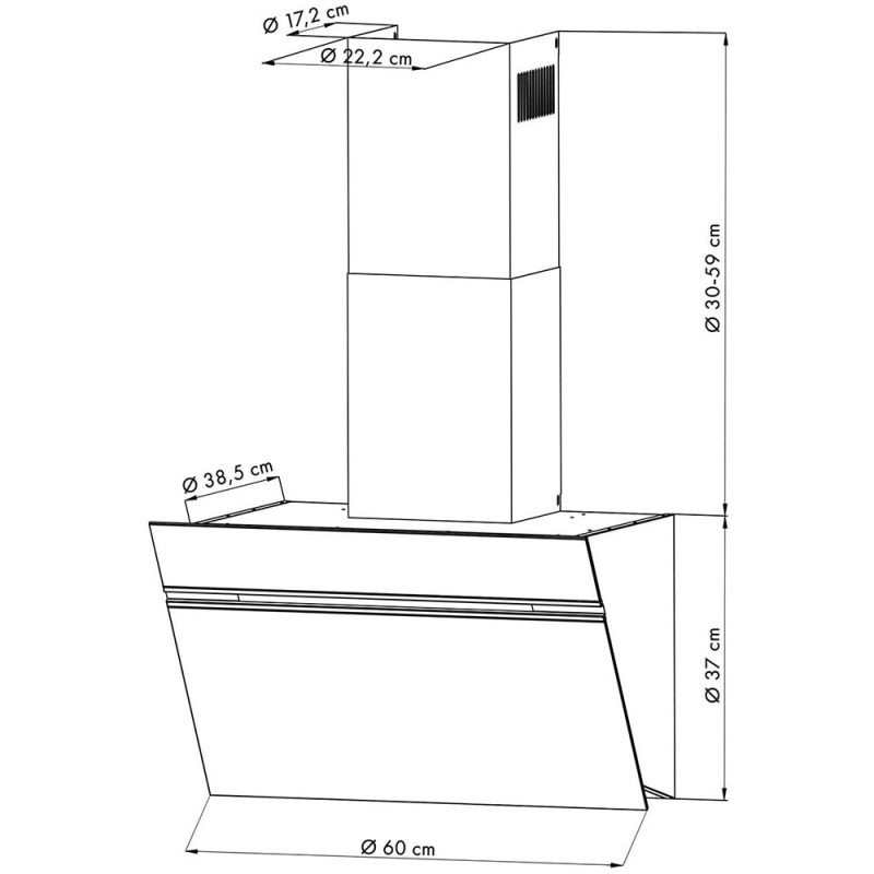 Kích thước mặt ống khói: xấp xỉ 22,2 x 30 – 59 x 17,2 cm (WxHxD).