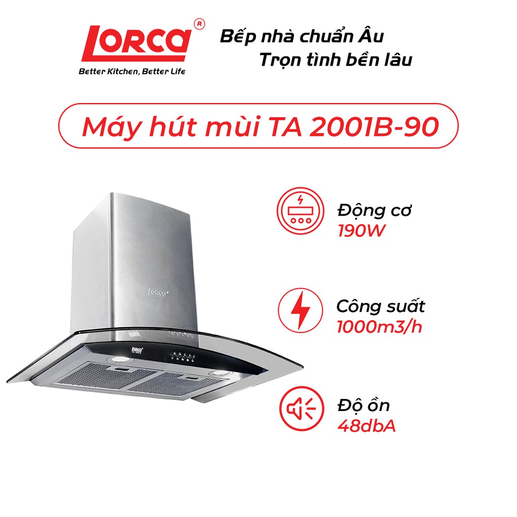 Máy hút mùi Lorca TA 2001B -90 cm (48 dbA) - Bảo hành 3 năm