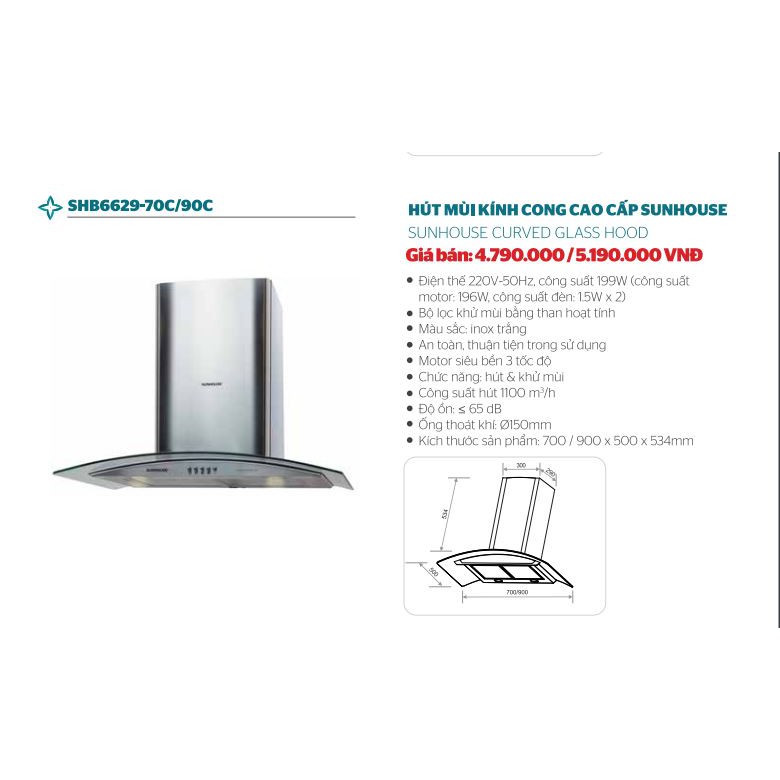 Thiết Bị Điện Gia Dụng > Đồ gia dụng nhà bếp > Máy hút khói || [Mã 273ELHA100K0 hoàn 7% đơn 500K] Máy hút mùi Sunhouse SHB 6629-70CCòn hàng
