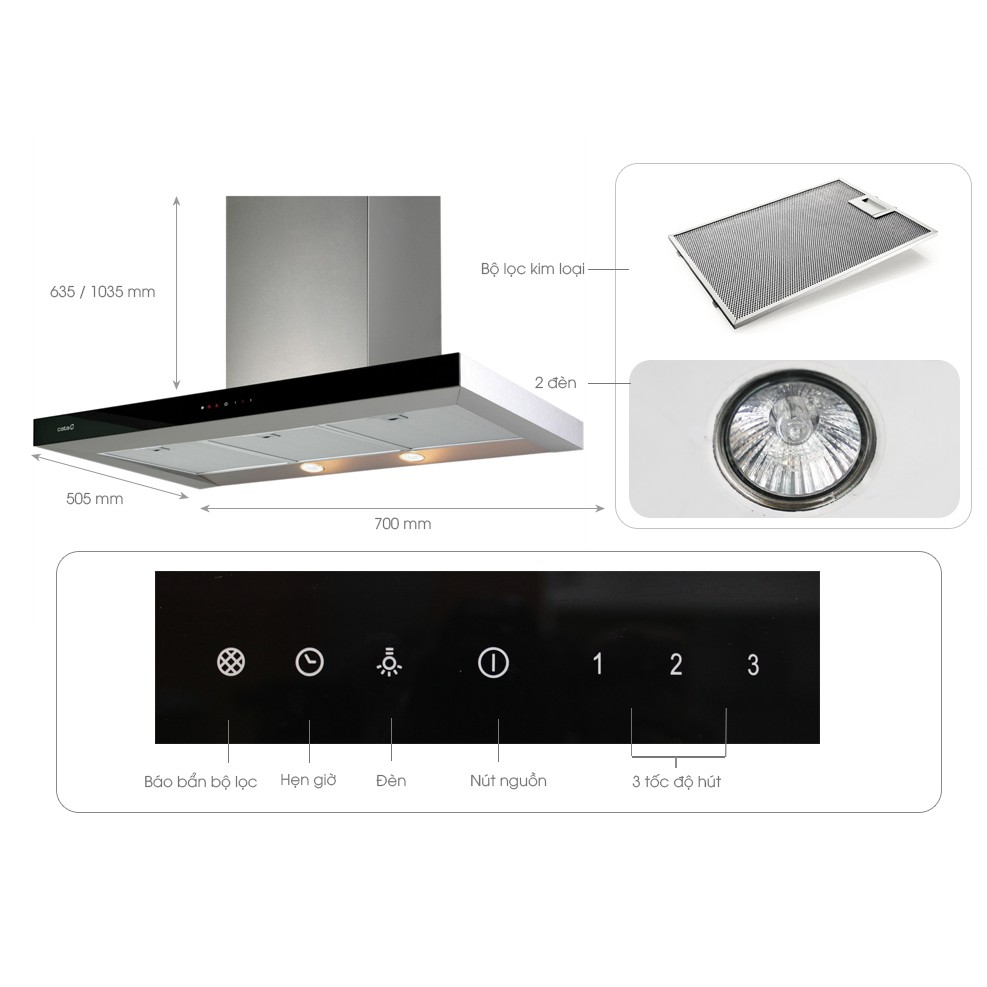 Giới thiệu Máy Hút Mùi Treo Tường Cata SELENE 70 Màn Hình Led, Hẹn Giờ Tự Động, 3 Cấp Độ Hút, Khử Mùi Nhà Bếp,Phòng Ăn