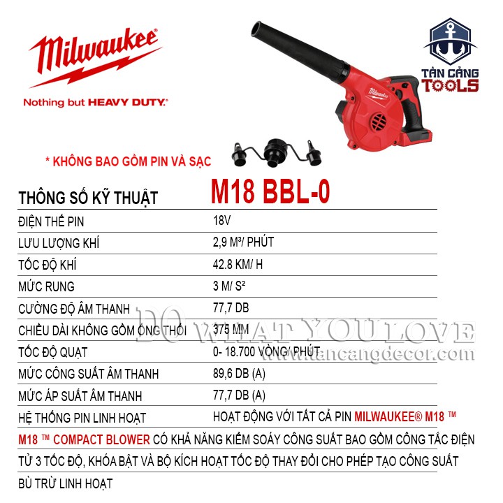 Máy Hút Thổi Bụi Có Điều Tốc Dùng Pin Milwaukee M18 BBL-0 ( Thân Máy )* Thông Tin Sản Phẩm :
