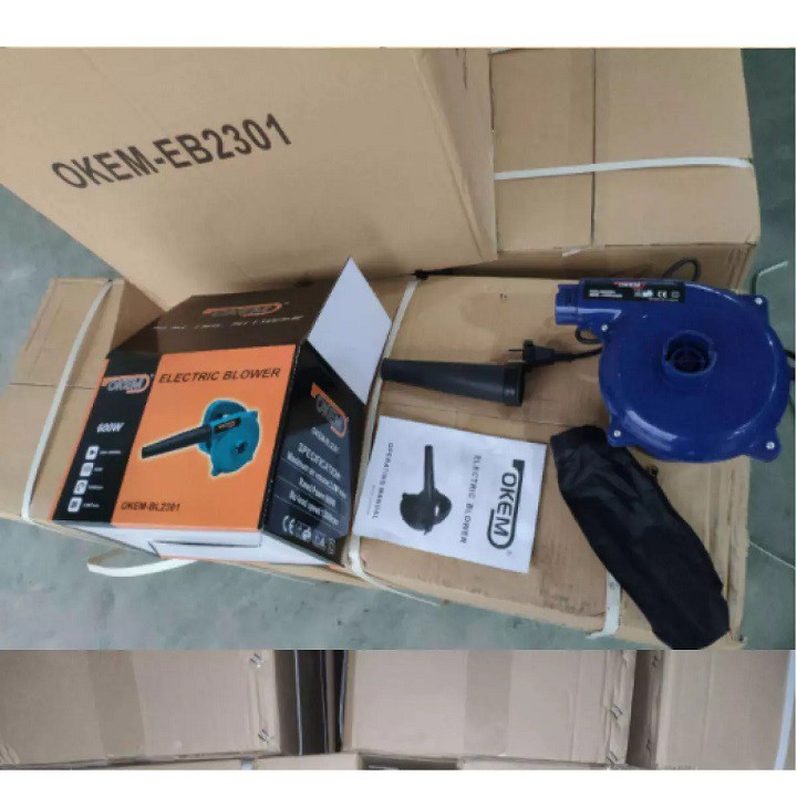 - Đặc tính của máy thổi bụi cầm tay OKEM là lực thổi rất mạnh có thể thổi đi các bụi bẩn nằm trong các góc khuất, có công tắc điều chỉnh tốc độ tiện dụng nhiều công việc.