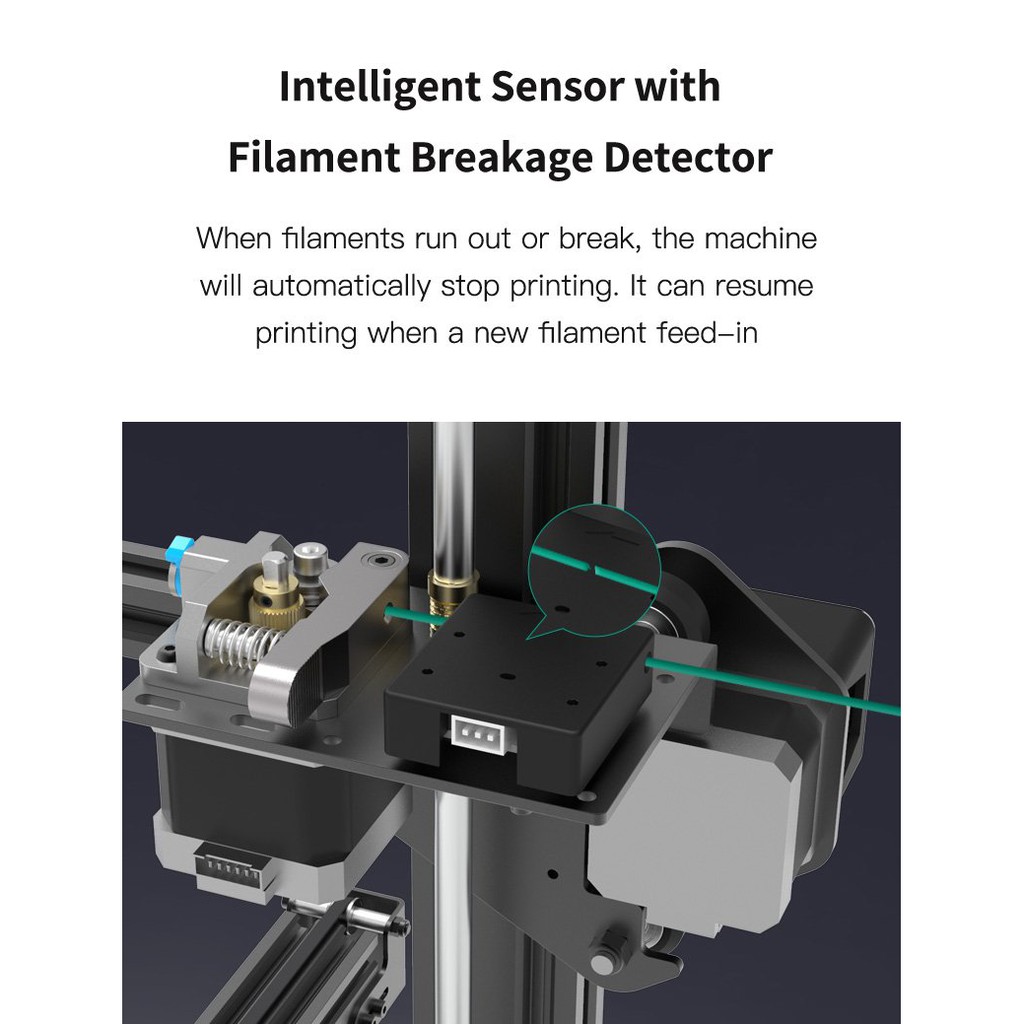 _Cảm biến thông minh với Máy dò đứt sợi: Khi sợi nhựa hết hoặc đứt, Creality Ender-3 Max sẽ tự động ngừng in. Nó có thể tiếp tục in khi có nguồn cấp sợi mới vào.