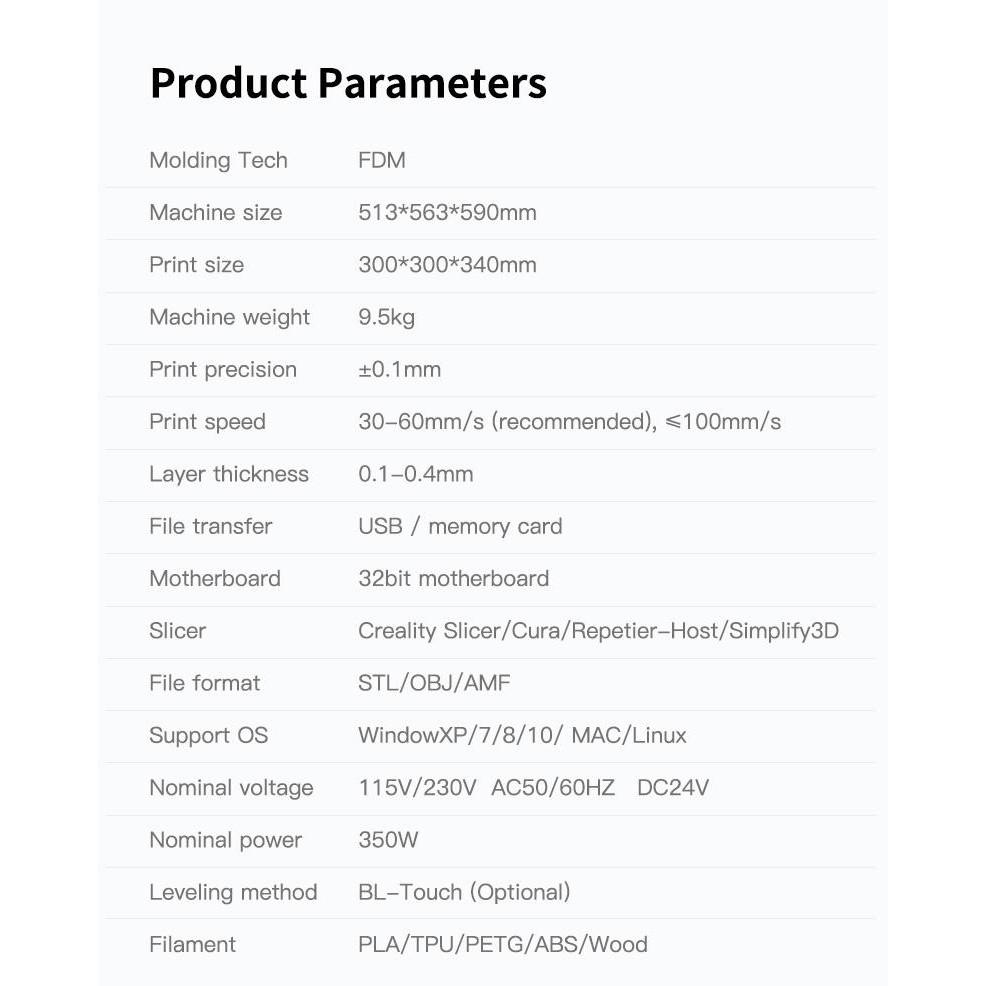 _Kích thước in lớn-Không gian làm việc tối đa, Sản xuất tối đa : 300*300*340mm, một không gian làm việc lớn hơn nhiều so với trên máy in 3d Ender-3. Kích thước in lớn hơn có nghĩa là năng suất sản xuất cao hơn.