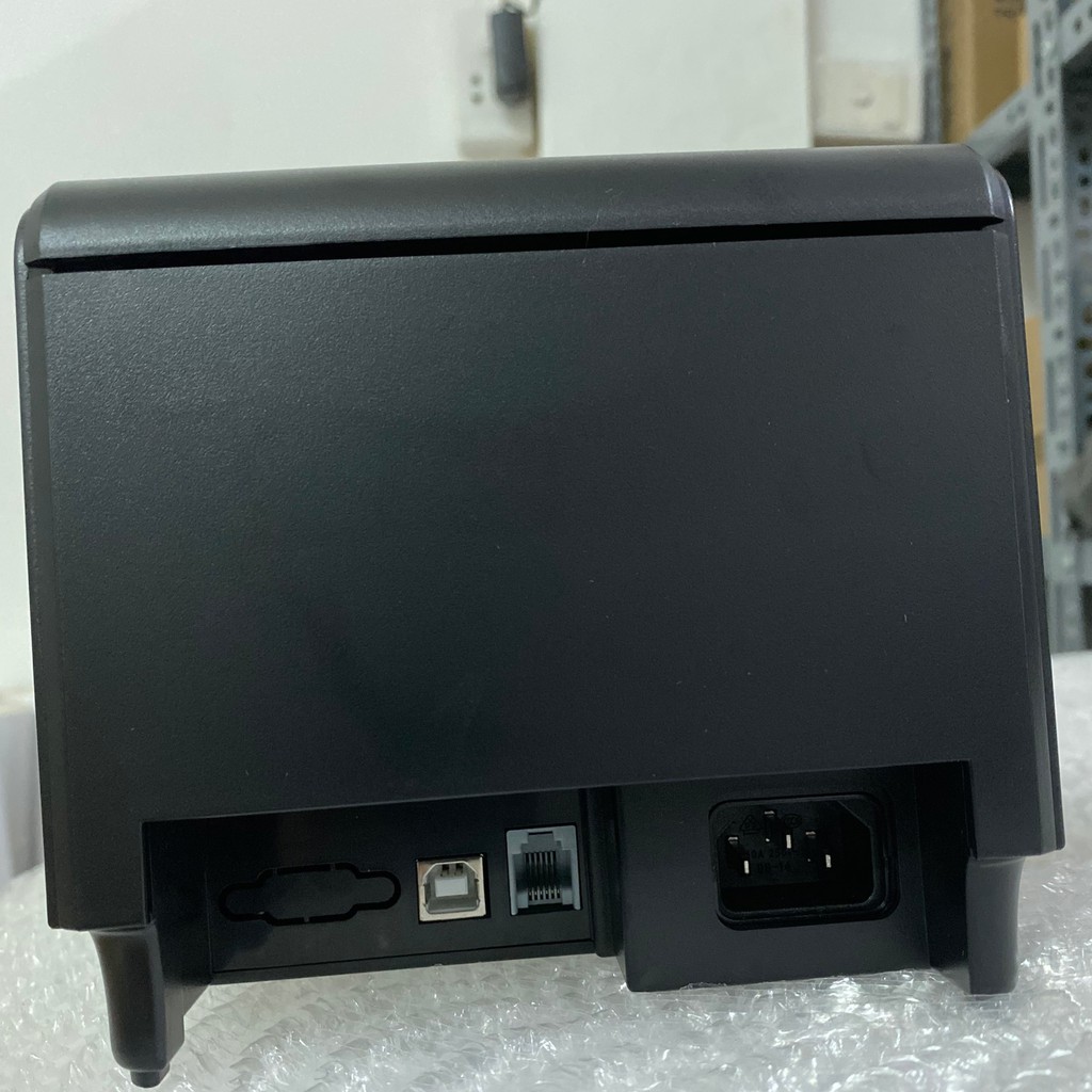 - Giao tiếp: USB, có jack RJ11 kết nối với ngăn kéo đựng tiền siêu thị (hay còn gọi là ngăn kéo thu ngân/két thu ngân) để tự bật két ra sau khi in hóa đơn