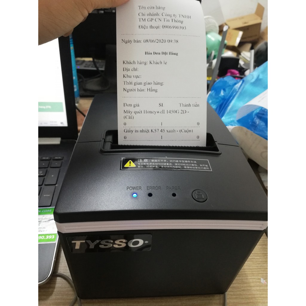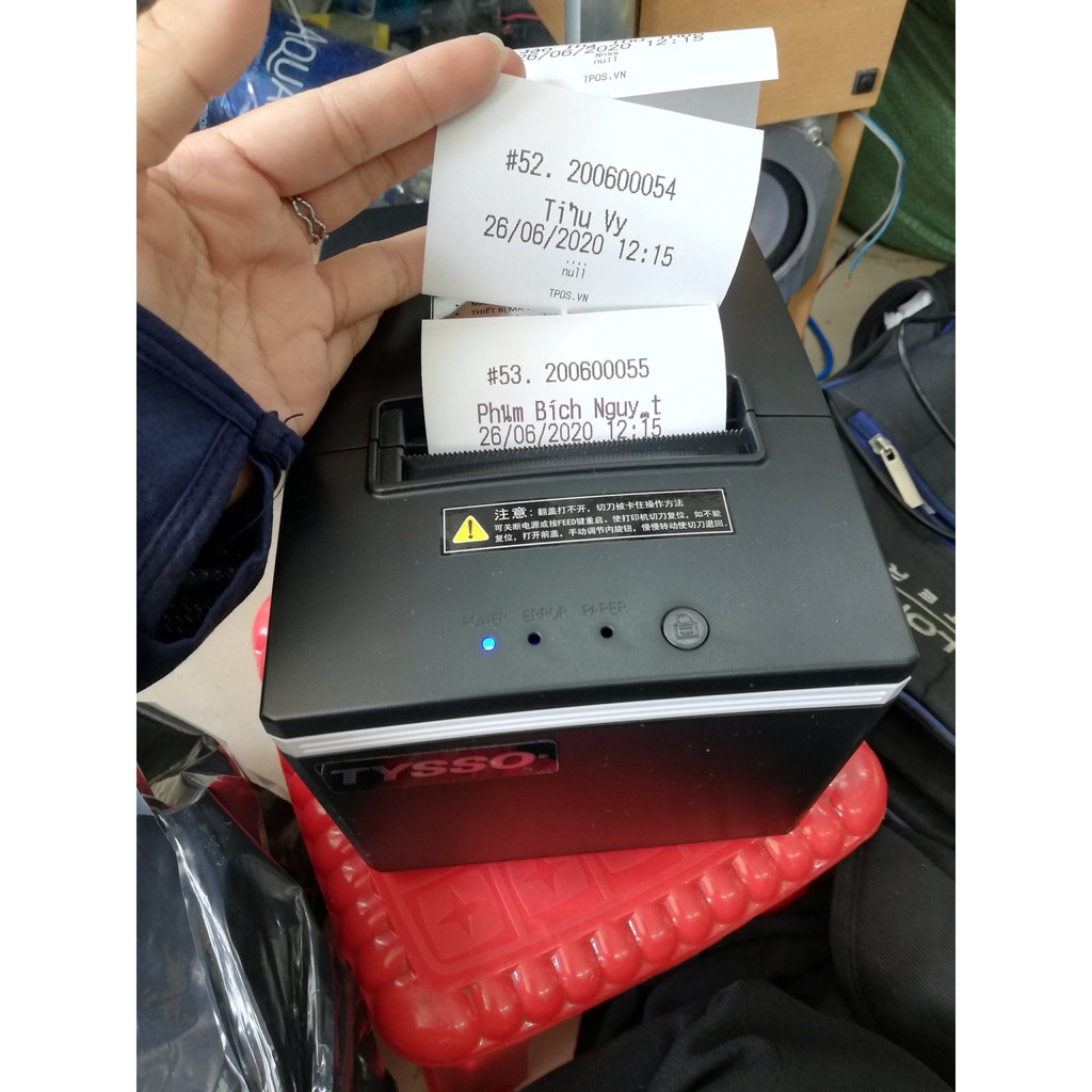 Sau đây mình sẽ giới thiệu 1 vài thông tin về MÁY IN HÓA ĐƠN TYSSO 0851/ Là máy in nhiệt đốt mực trực tiếp trên giấy in nhiệt nên không cần thay mực gì hết ( mỗi cuộn giấy 6.000 18m, trung bình mỗi bill in từ phần mềm tpos 5cm thì gần 400 bill)