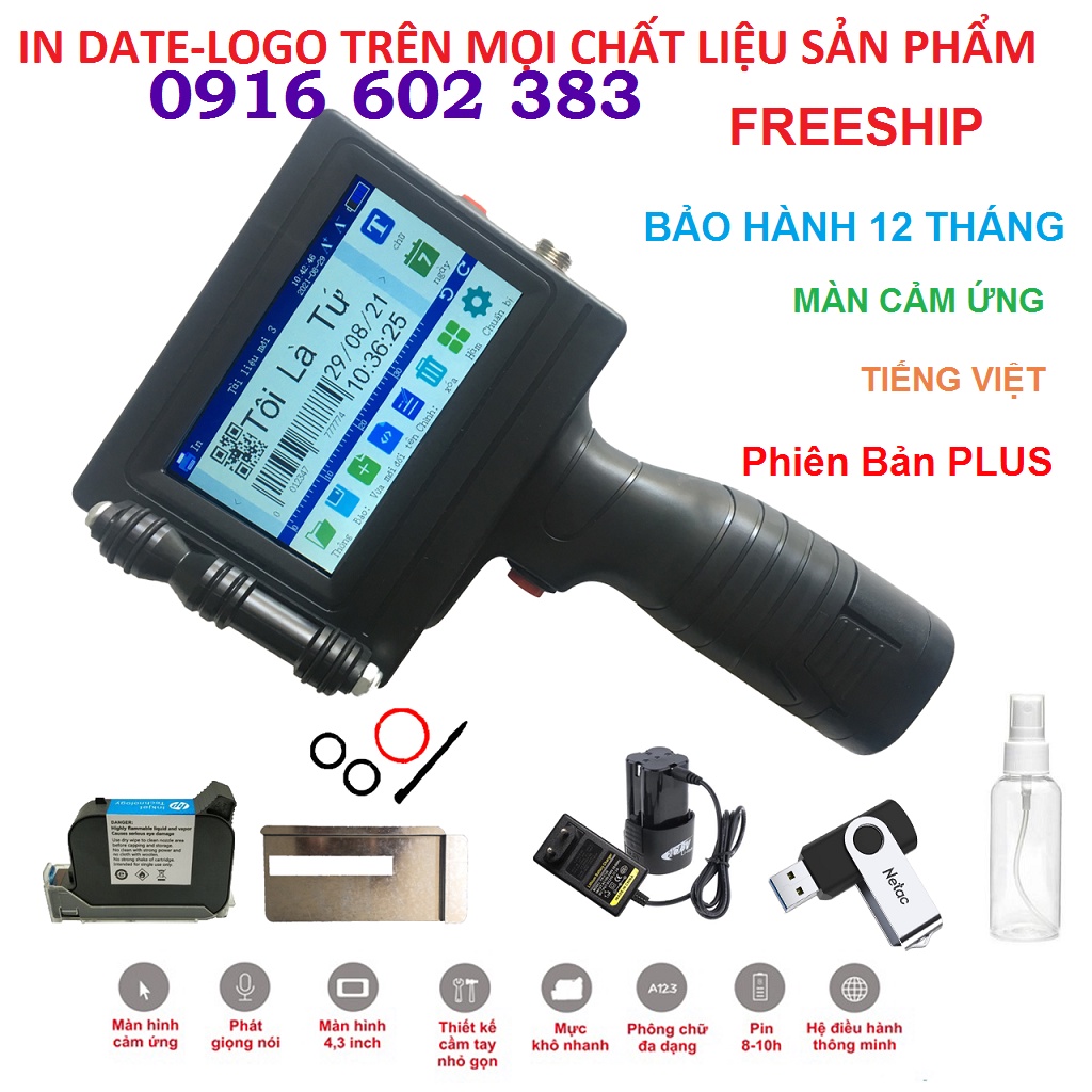 Máy in date cầm tay, máy in logo, thông số lên tất cả sản phẩm với mọi chất liệu phiên bản Plus