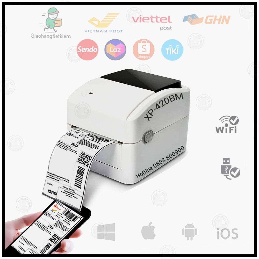 CHI TIẾT MÁY IN Xprinter XP420B với 3 phiên bản USB/ USB + LAN / USB + Wifi ( tùy chọn)
