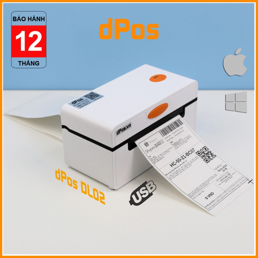Máy in dPos DL02, DT108B & RP421 là máy in in hoàn hảo cho shop bán hàng TMĐT và mọi nhu cầu in ấn tem nhãn, tem sản phẩm, Sticker, thư cảm ơn....!Những đặc điểm nổi bật và ấn tượng của dPos DL02, DT108B & RP421