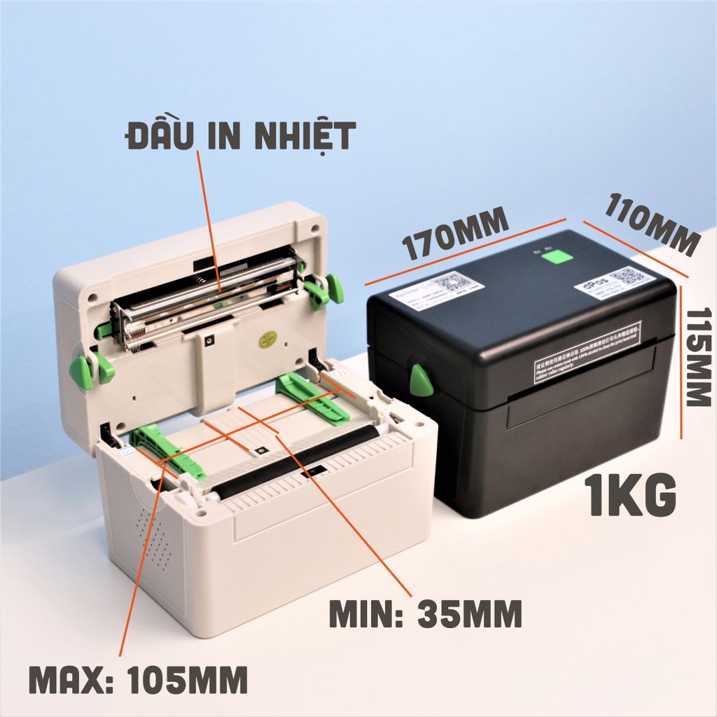 - Tốc độ in: 50-160mm/s (1 giây 1 đơn hàng)