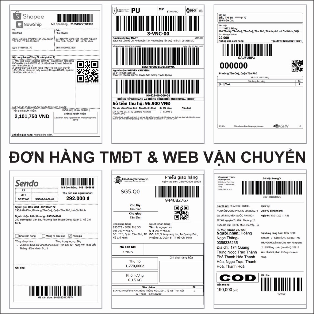 ✅ Có thể in đơn hàng của các sàn TMĐT và web vận chuyển GHTK, GHN, Viettel Post, J&T, EMS, KiotViet, Sapo, Nhanh, Suno, Haravan, Máy bán hàng, TPOS...in từ Word, Excel, Bartender.