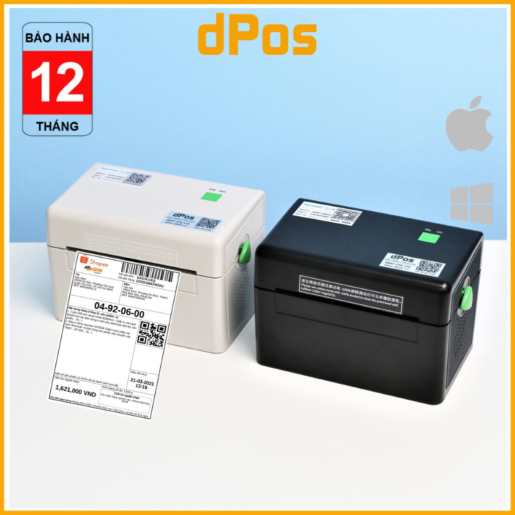 Máy in đơn hàng TMĐT dPos DT108B in phiếu giao hàng tem vận chuyển tem mã vạch Minicode sản phẩm và tem phụ hàng hóa