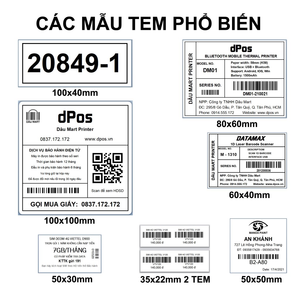 ✅ Giấy in là loại tem nhiệt 3 lớp chống nước có sẵn keo dán, dán lên được nhiều bề mặt. In xong bóc ra là dán không cần băng keo.