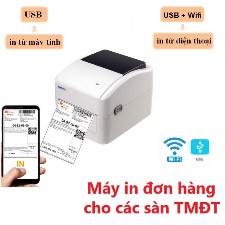 Máy in Xprinter XP420BW ( USB + Wifi) là lựa chọn số 1 khi bạn muốn in đơn hàng, tem vận chuyển sàn TMĐT từ điện thoại và máy tính Macbook.