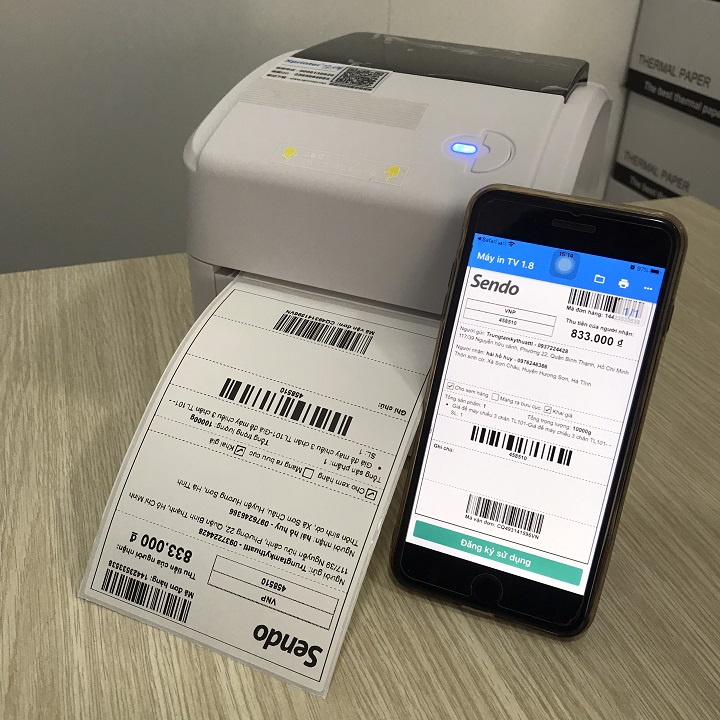 ✅ Giấy in là loại tem nhiệt 3 lớp chống nước có sẵn keo dán, dán lên được nhiều bề mặt. In xong bóc ra là dán không cần băng keo.