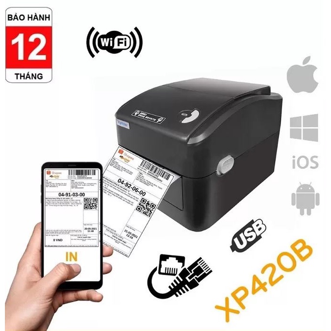 Máy tính & Laptop > Máy In & Máy Scan > Máy In Mã Vạch || [Mã 253ELSALE hoàn 7% đơn 300K] Máy in đơn hàng TMĐT khổ giấy A6 Xprinter 420B - Tùy chọn cổngCòn hàng