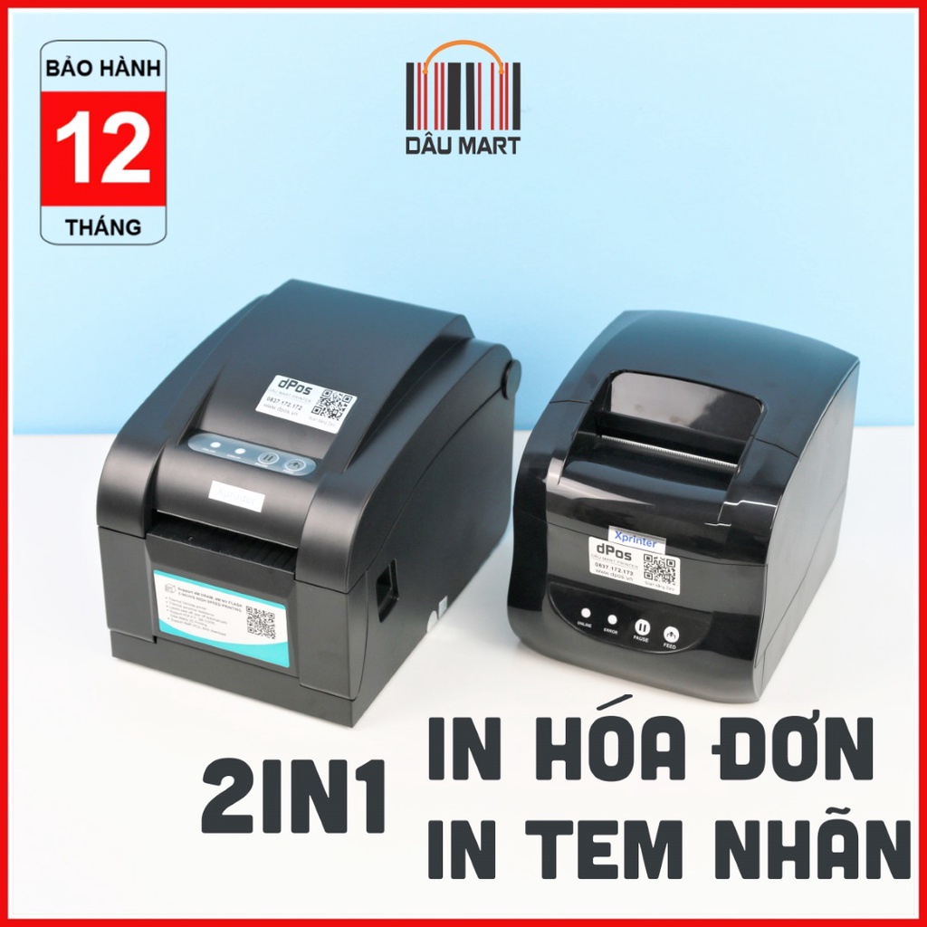 Máy in dPos Xprinter XP350B và XP318B in tem nhãn mã vạch Minicode, tem phiếu vận chuyển và in Bill hóa đơn cửa hàng