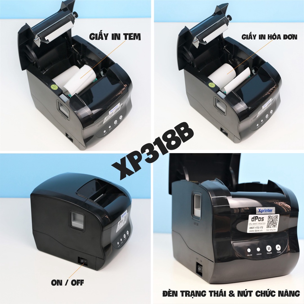 1. XP318B IN TEM & BILL: In được cả tem nhãn và Bill hóa đơn từ máy tính