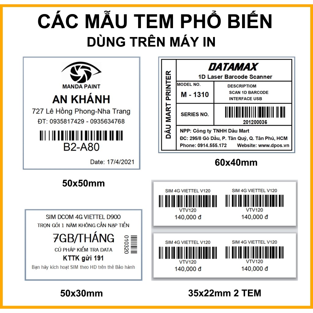 ✅ Giấy in là loại tem nhiệt 3 lớp chống nước có sẵn keo dán, dán lên được nhiều bề mặt. In xong bóc ra là dán không cần băng keo.