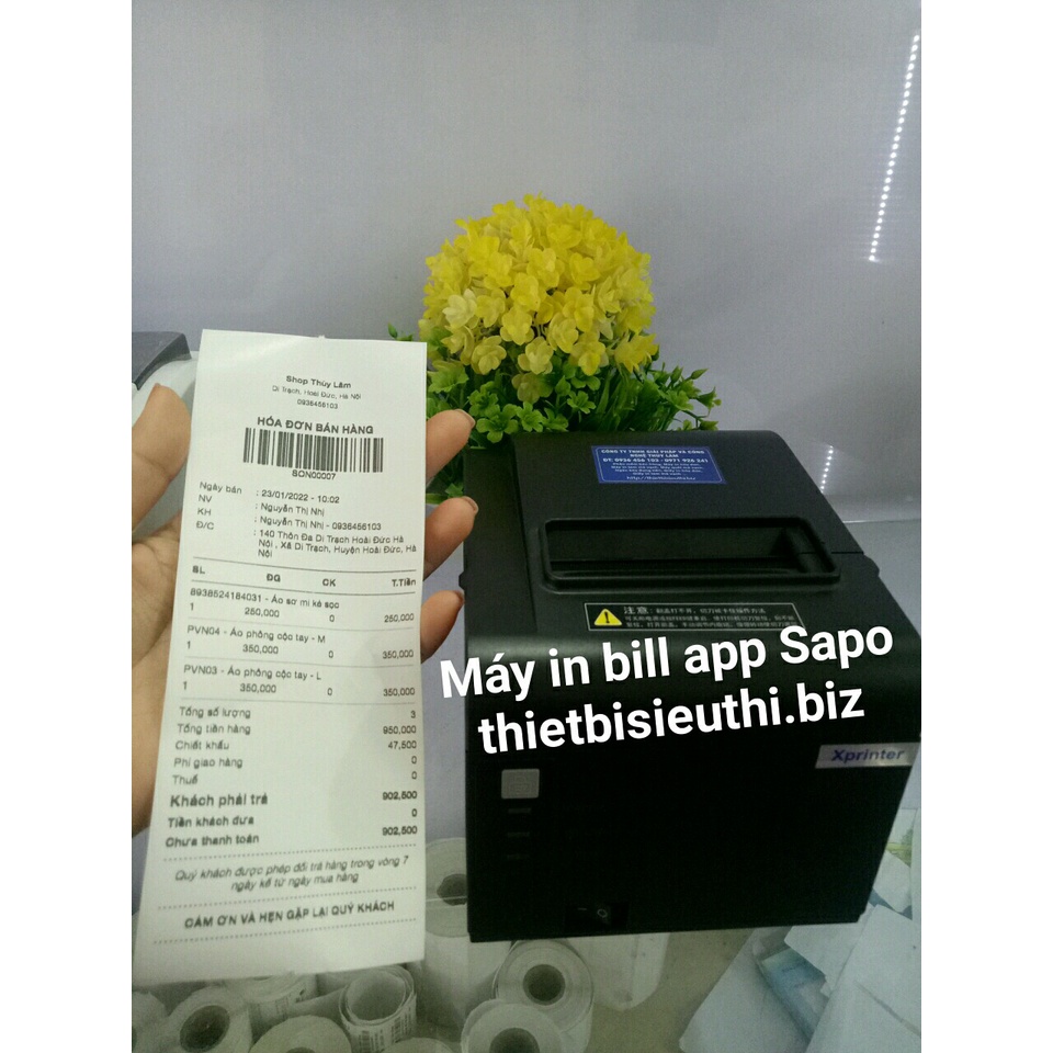 Máy in hóa đơn bán hàng qua điện thoại sử dụng các app bán hàng Loyverse, kiotviet, sapo...Máy in hóa đơn Xprinter Q200: Có cổng kết nối USB và LAN nên in hóa đơn bán hàng cả từ máy tính và điện thoại.🍀 In nhanh, tốc độ lên đến 200mm/s