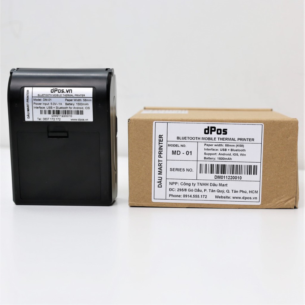 Máy in hóa đơn bluetooth dPos DM01 là lựa chọn hoàn hảo để in Bill / hóa di động trên điện thoạiLƯU Ý: MÁY IN IN ĐƯƠC HÓA ĐƠN. KHÔNG IN ĐƯỢC TEM NHÃN VẬN CHUYỂN