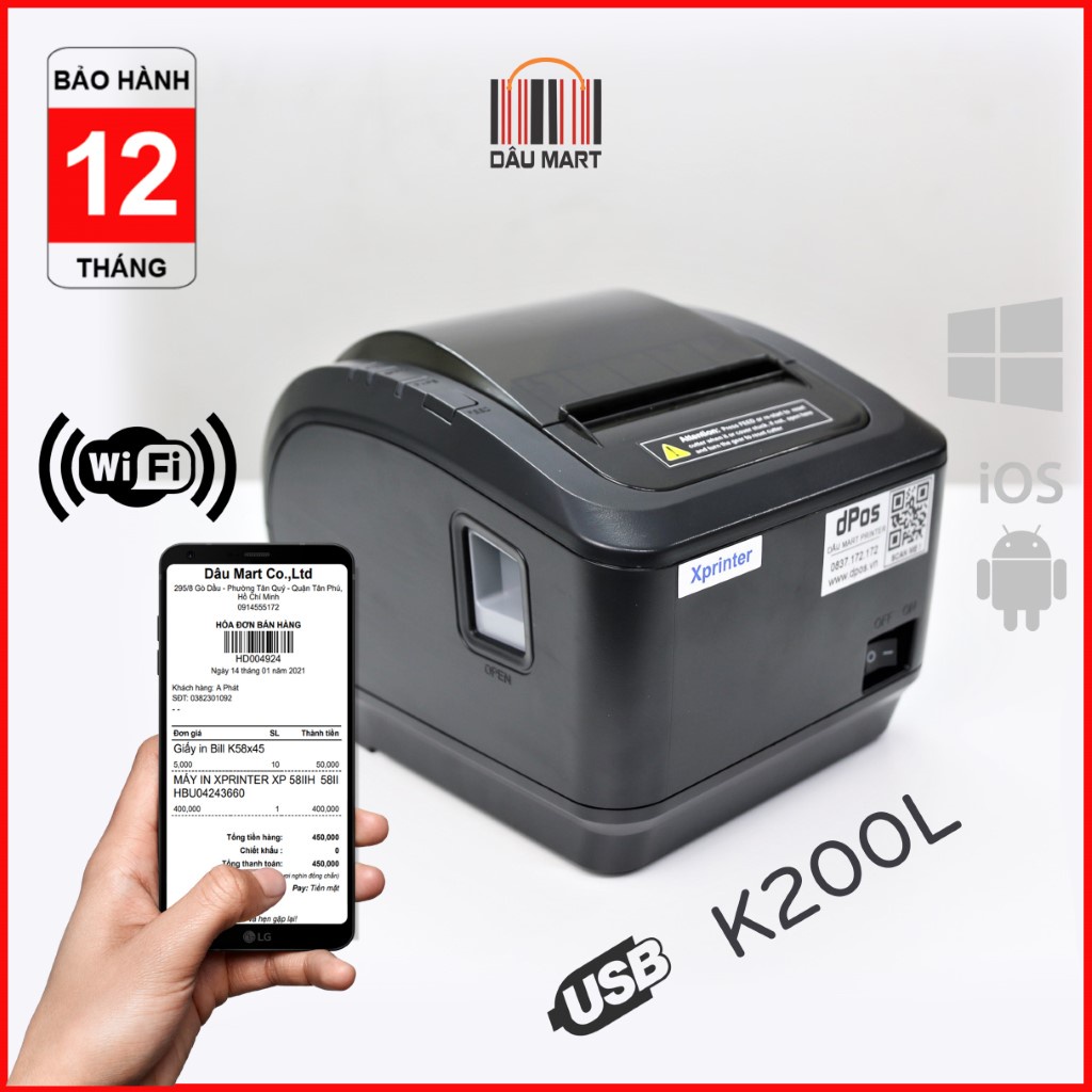 Máy in hoá đơn K80 dPos K200L & N160II WIFI in bill Không Dây qua WIFI từ điện thoại máy tính PC