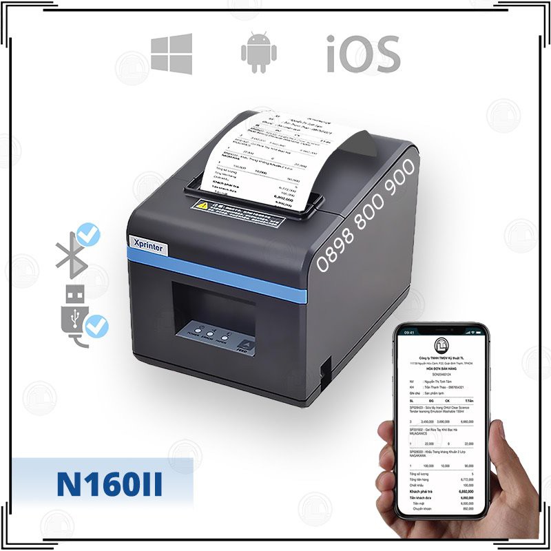 Máy in hóa đơn khổ 80 Xprinter XP-N160B (USB + BLUETOOTH) in bill thẻ nạp điện thoại từ ứng dụng Viettelpay Pro và Sapo