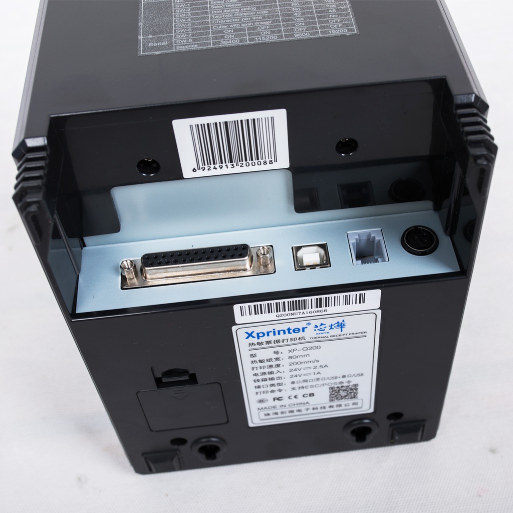 Sản phẩm Máy in nhiệt, in bill, in hoá đơn khổ 80mm (K80) chính hãng Xprinter Q200 USB/LAN hoặc USB/RS232, tốc độ in lên đến 200mm/s, độ bền đầu in trên 100km.Xprinter Q200 tích hợp full cổng kết nối, in trên nhiều máy tính/laptop, cũng như in từ app bán hàng / app POS thu ngân trên điện thoại/iPad/máy tính bảng... (VD: Kiotviet, Sapo POS, POS365, Ocha, iPOS...)