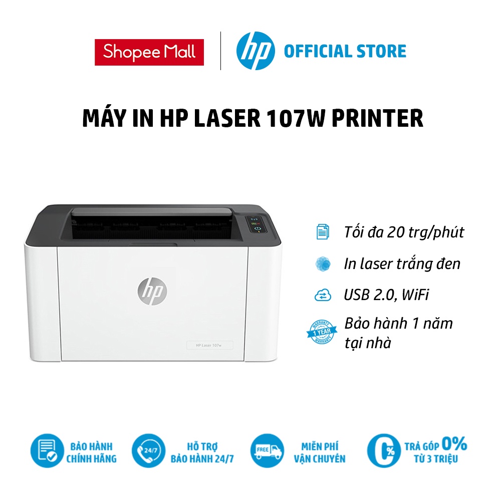 Máy tính & Laptop > Máy In & Máy Scan > Máy In, Máy Scan & Máy Photo || [Mã ELMALL10 giảm 10% đơn 500K] Máy in Laser trắng đen HP 107w Printer (In, Wifi, Trắng) 4ZB78A) - Hàng Chính HãngCòn hàng