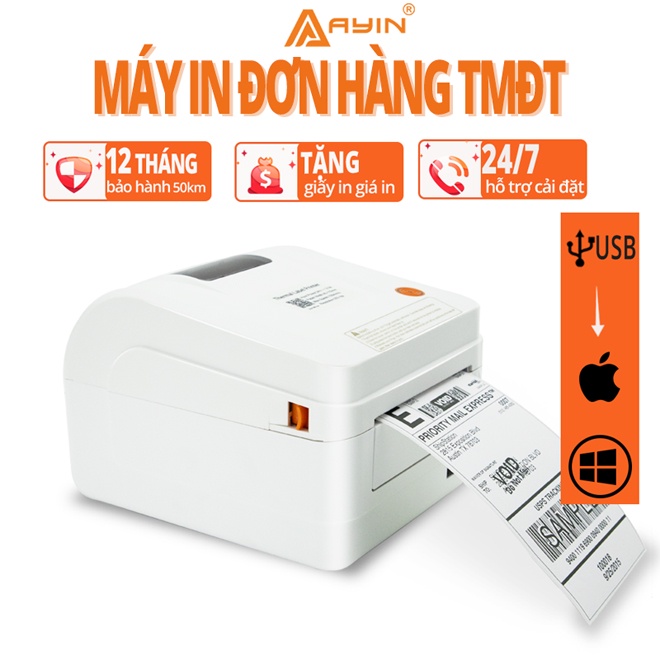 Máy in nhiệt AYIN,đơn hàng TMDT,tem vận chuyển,logo,tem nhãn,khổ A6 A7