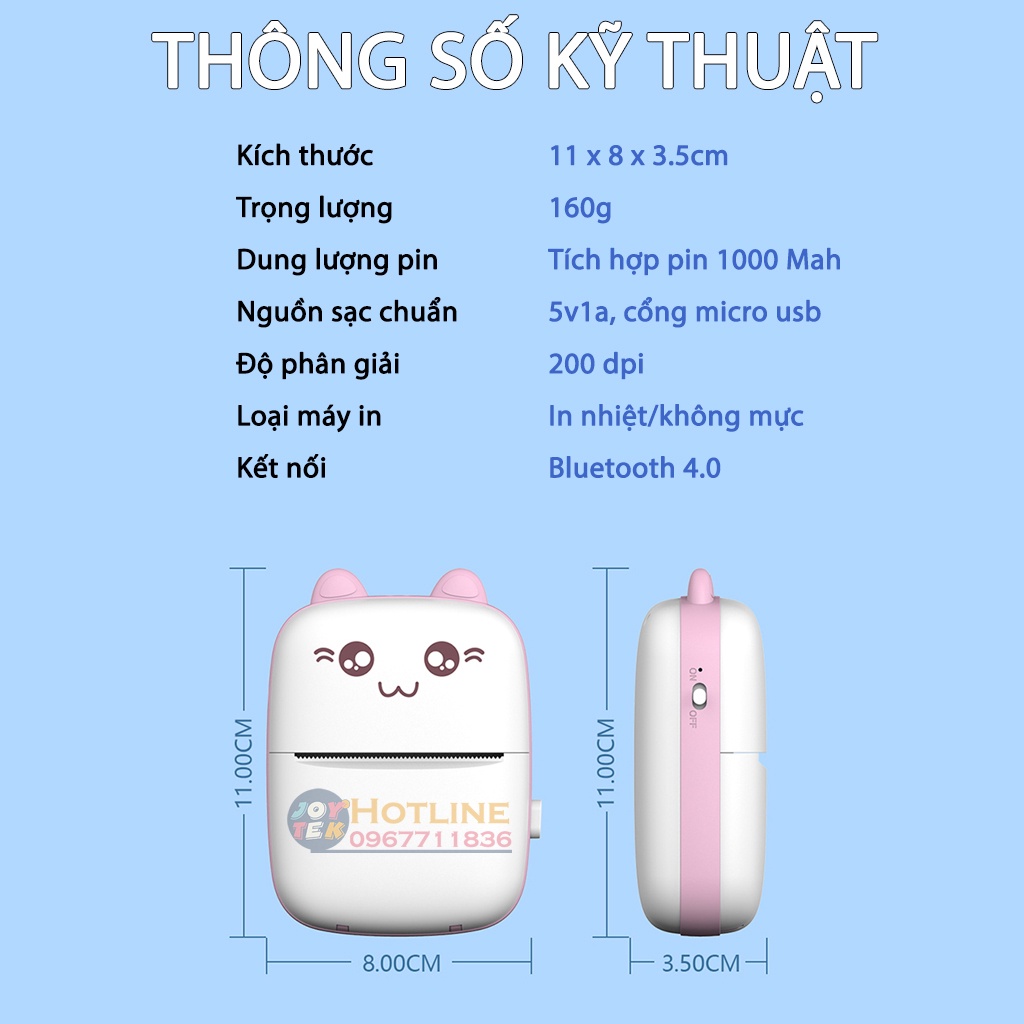 ✔️ Tính năng: Tích hợp pin sạc 1000mAh, hoạt động ít ồn, MÁY IN NHIỆT không cần hộp mực khi sử dụng, chi phí vận hành thấp. Độ phân giải 200DPI, chất lượng in tốt.