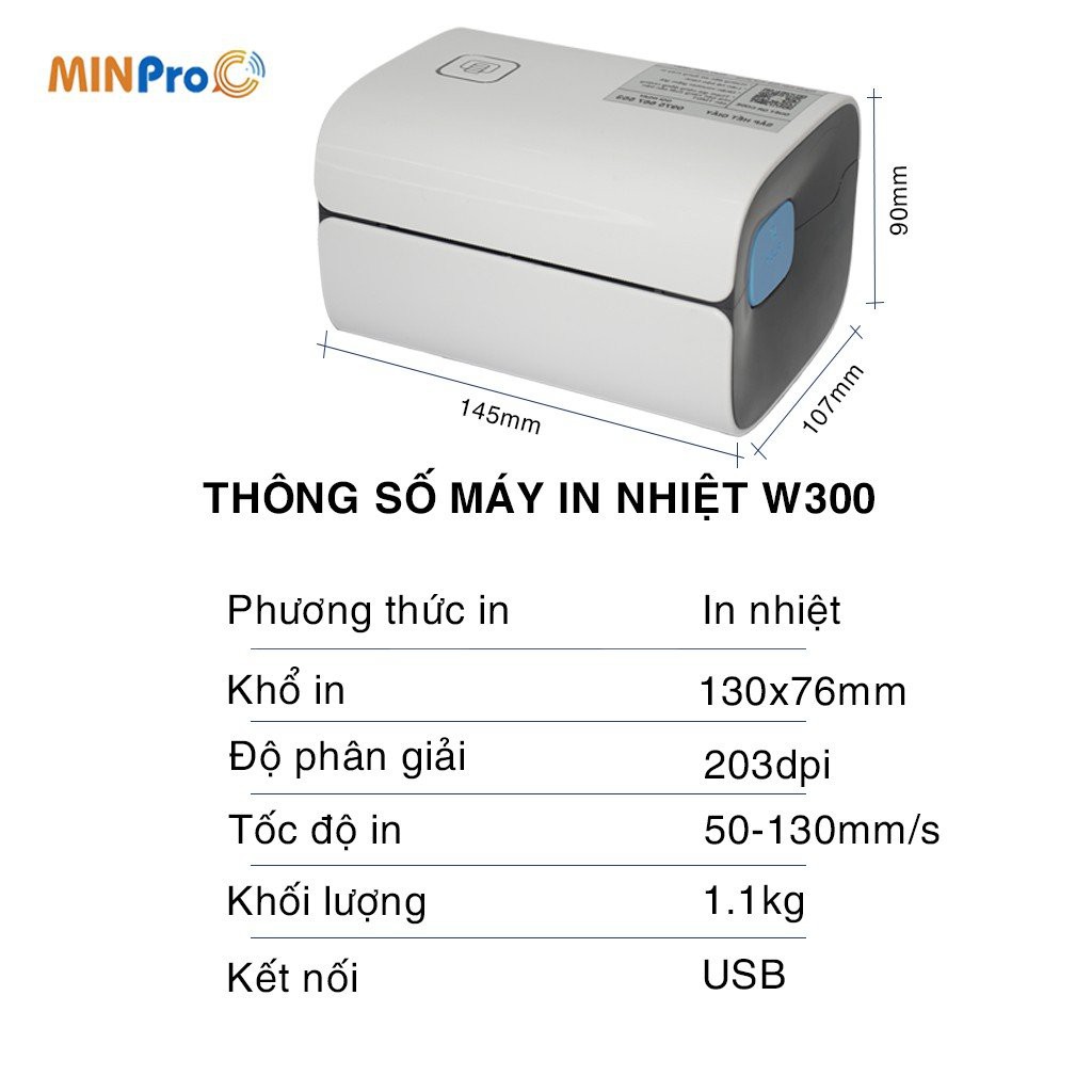Máy in nhiệt MINPRO W300 in đơn hàng, tem mã vạch, hóa đơn, giấy in nhiệt tự dính bảo hành 12 tháng