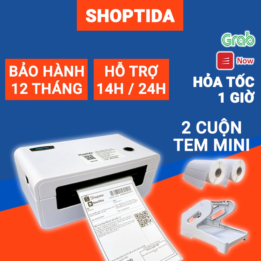 Máy in nhiệt Shoptida SP46 kèm 2 cuộn tem in nhiệt 35*22mm và khay, combo máy in đơn hàng tự dán bảo hành 12 tháng