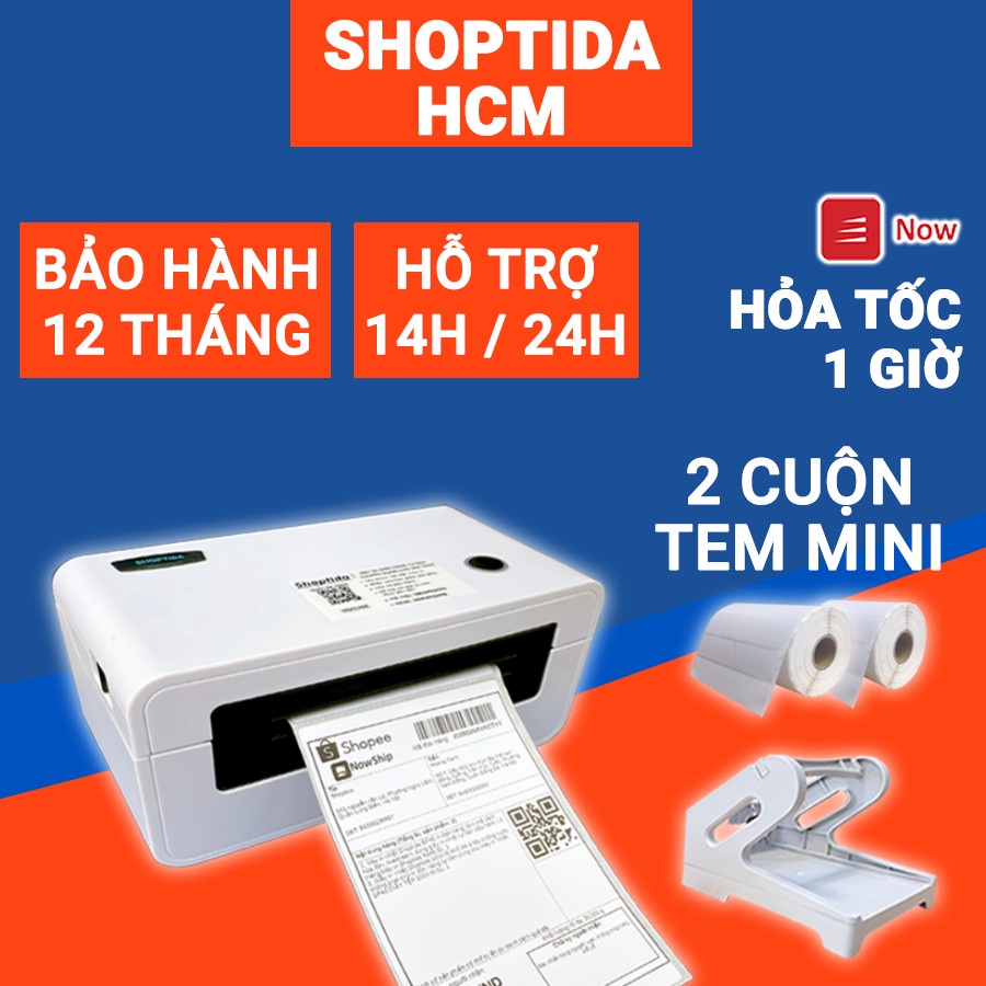 Máy in nhiệt Shoptida SP46 kèm 2 cuộn tem in nhiệt 35*22mm và khay, combo máy in đơn hàng tự dán bảo hành 12 tháng