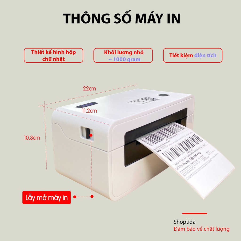 *Máy in nhiệt Shoptida SP46 in đơn hàng TMĐT kèm khay đựng giấy và 2 cuộn tem in nhiệt khổ 35x22mm------------------------------------------