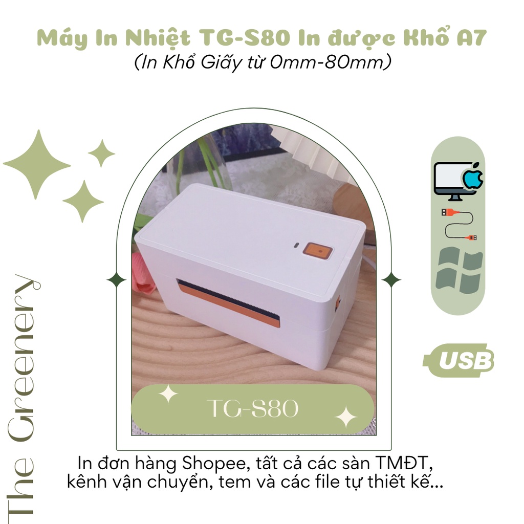 Máy in nhiệt The Greenery TG S80/ TG S108 In Đơn Hàng Shopee, Tem, Mã Vạch, Hóa Đơn,...-Gồm 2 size: + S80- In được khổ 80mm bề ngang đổ xuống (A7 đổ xuống)