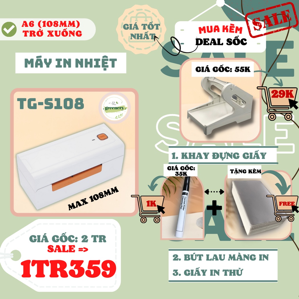 Máy in nhiệt The Greenery TG S80/ TG S108 In Đơn Hàng Shopee, Tem, Mã Vạch, Dùng Giấy In Nhiệt Tự Dính Phiên Bản Quốc Tế